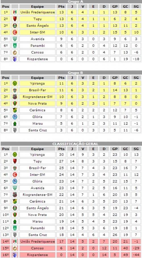 Tupi 3 x 1 Panambi, Inter SM 0 x 1 Avenida, Riopardense 0 x 3 União, Canoas 1 x 2 Santo Ângelo, Glória 1 x 2 Riograndense, Santa Cruz 1 x 1 Cerâmica, Marau 4 x 5 Brasil de Farroupilha e Ypiranga 0 x 0 Nova Prata.