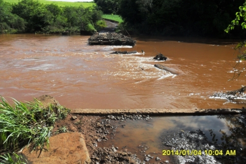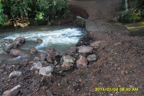 Na localidade de Linha Mirim um pontilhão teve parte arrancada pela força da água (foto abaixo).