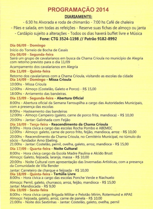 Cultura - 04/09/2014 - CTG Estância da Saudade divulga a programação oficial da Semana Farroupilha 2014