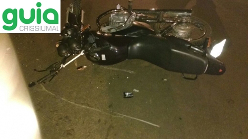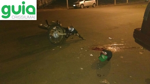 Um motociclista teve ferimento consideráveis, depois de colidir contra uma caminhoneta por volta das 20 horas nas proximidades do Clube Crissiumal.