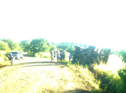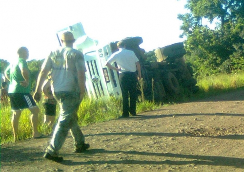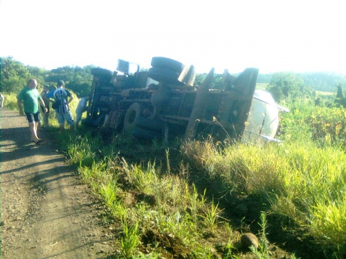 Um caminhão de transporte de leite tombou na ERS 305 no interior de Crissiumal por volta das 8:00 Hs da manhã desta sexta-feira, dia 10 de janeiro.