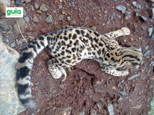 Uma jaguatirica jovem foi encontrada morta ao lado da estrada, na localidade de Cabeceira do São Vicente, a menos de 6 km da cidade.