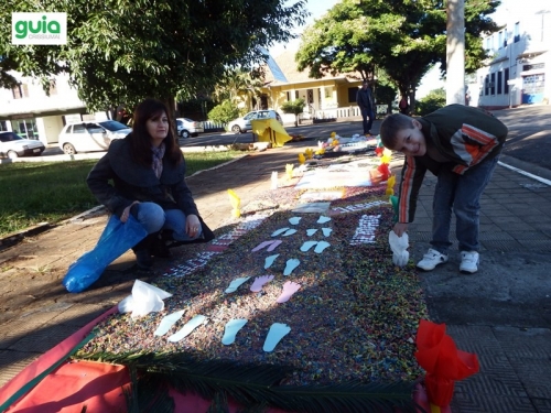 O Feriado de Corpus Christi em Crissiumal teve mais uma vez, como já é tradição, intensa programação da comunidade católica. O tradicional grande e colorido tapete enfeitou a Praça da Matriz e a Igreja Matriz nesta quinta-feira, dia 19 de junho. Dezenas de fiéis participaram da confecção do mesmo desde cedo.