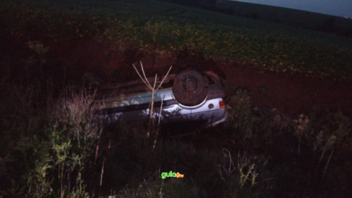 A saída de pista de um VW Gol, seguida de capotamento, ocorreu nas proximidades da novas instalações da Cotrisal.