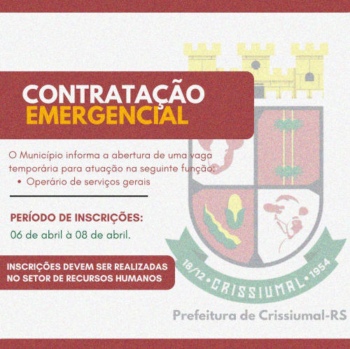 Inscrições podem ser efetuadas de 06 a 08 de abril de 2026