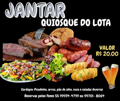 Cardápio: Picadinho, arroz, pão de alho, cuca e saladas diversas