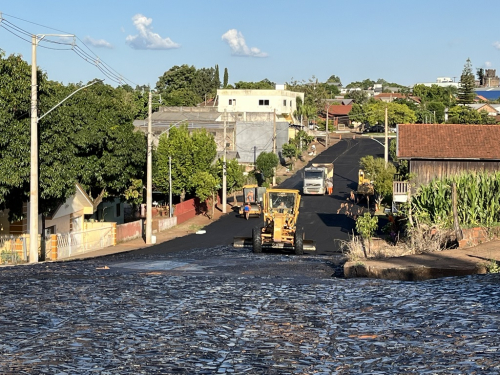 Colocação de asfalto tem sido feita entre a Praça da Vila Nova e a entrada do Seminário
