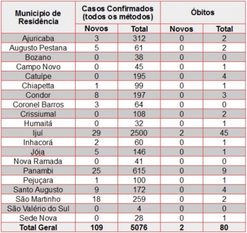 Crissiumal segue com 108 casos de coronavírus segundo a 17ªCRS