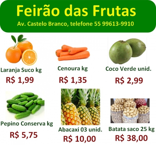 Av. Castelo Branco, telefone 55 99613-9910