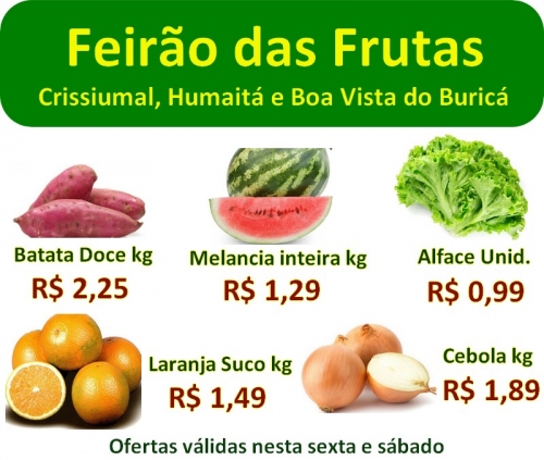 Ofertas válidas para Crissiumal, Humaitá e Boa Vista do Buricá
