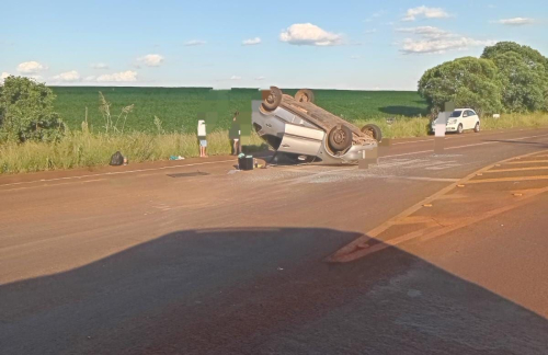 Um dos veÃculos envolvidos no sinistro capotou sobre a rodovia