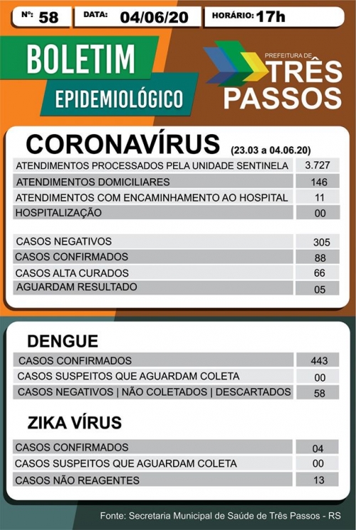 Estado soma seis óbitos pela doença e 3.160 casos confirmados de janeiro a maio de 2020