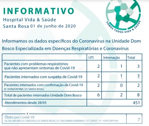 O senhor de 58 anos estava internado na unidade Dom Bosco desde dia 06 de maio