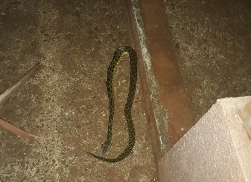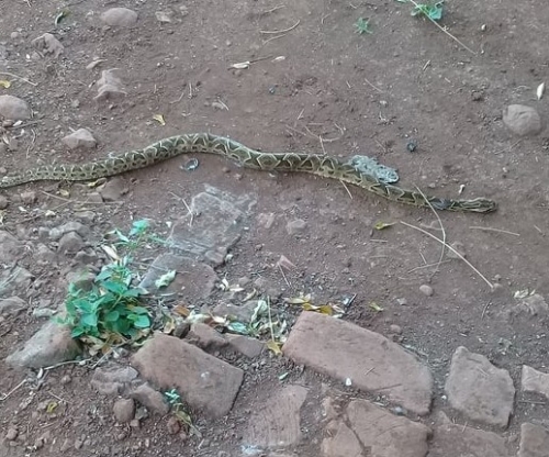 Na manhã deste domingo, Sandra Guth encontrou serpente de grande porte
