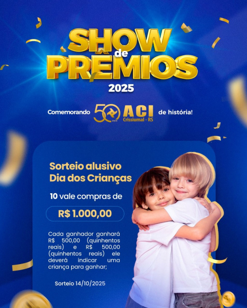 Serão 10 vales-compras de R$ 1.000,00. Guia Crissiumal transmite ao vivo