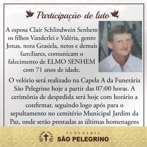 O corpo está sendo velado na capela A da Funerária São Pelegrino