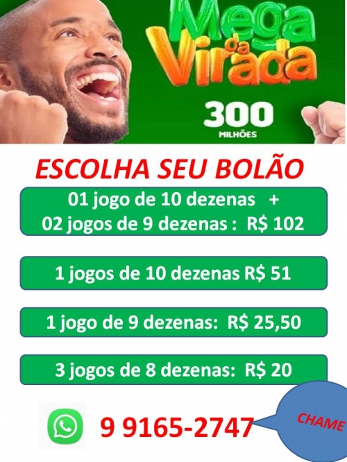 Reserve sua cota de bolão no WHATSAPP 99165-2747