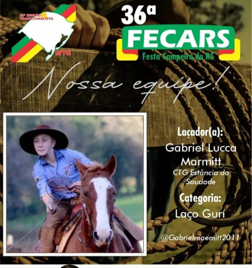 Gabriel Lucca Marmitt é laçador na categoria Laço Guri