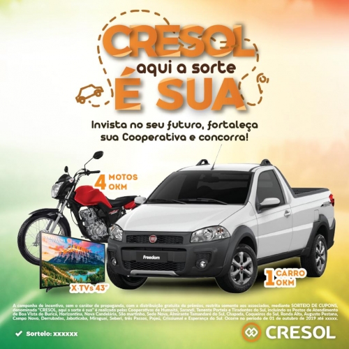 Invista no seu futuro, fortaleça sua cooperativa e concorra aos seguintes prêmios