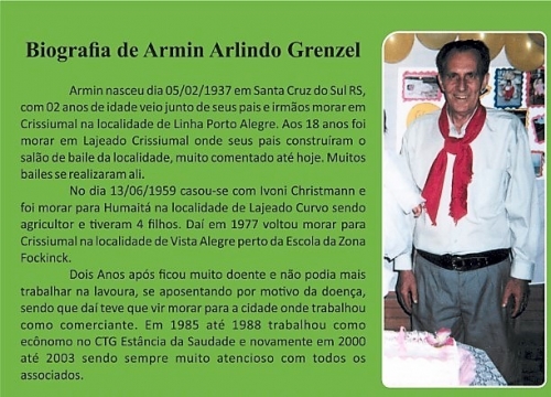 Armin Arlindo Grenzel é o tradicionalista homenageado