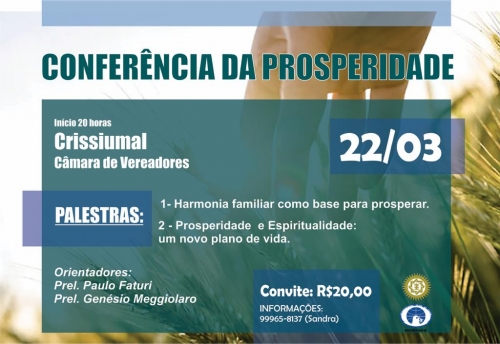 Dia 22 de março na Câmara De Vereadores de Crissiumal, início 20h