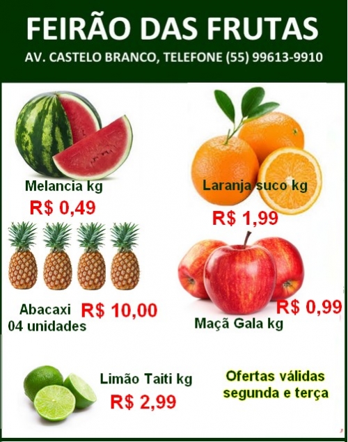 Av. Castelo Branco, telefone (55) 9 9613-9910