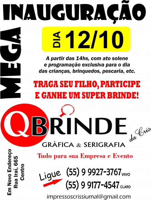 Dia 12 de outubro será o dia da Inauguração da empresa na Rua Iraí