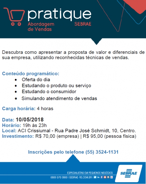 Inscrições junto a ACI ou pelo telefone (55) 3524-1131