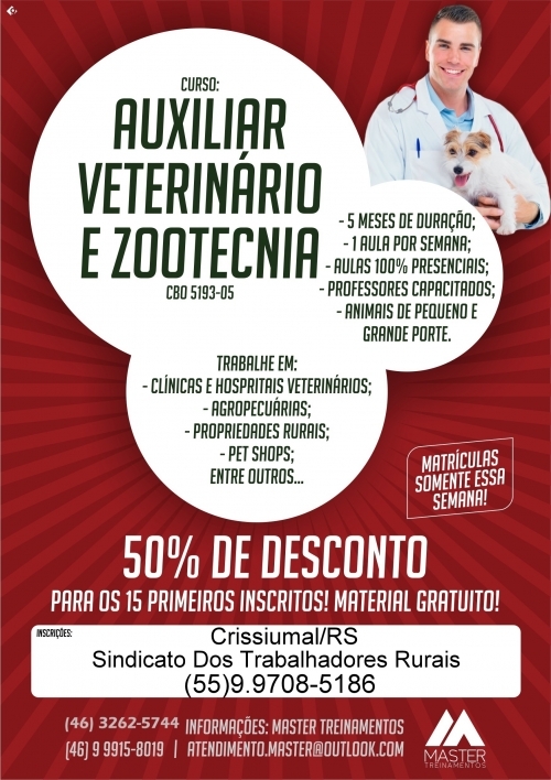 Inscrições junto ao Sindicato dos Trabalhadores Rurais de Crissiumal