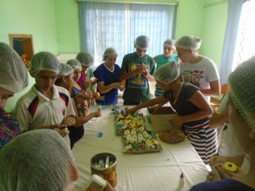 Os estudantes realizaram a doação de diversos itens, como: fraldas, leite, chocolate e materiais de limpeza