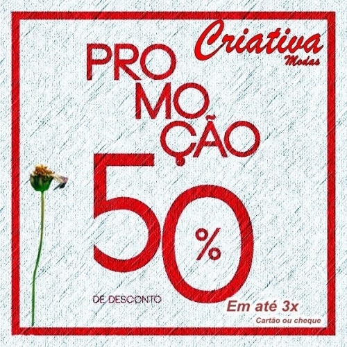 Aproveite, 50% de desconto parcelado em até 3 X