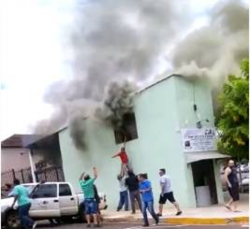 Pedreiro escalou parede para ter acesso à janela do prédio consumido pelas chamas e resgatar criança