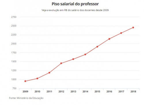 Com o aumento, piso nacional do magistério será de R$ 2.455,35 para jornada de 40 horas semanais