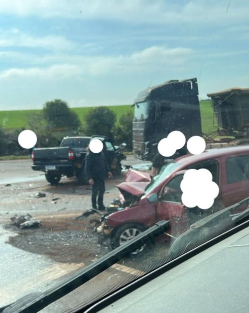 A colisão envolveu uma caminhonete, uma carreta e um veÃculo de passeio.
