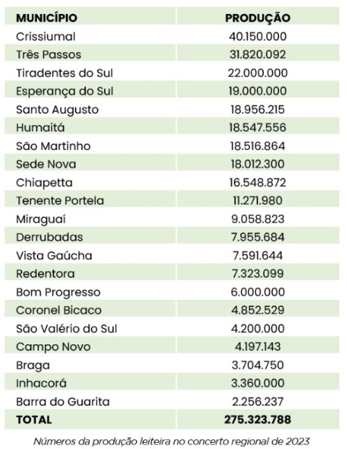 Crissiumal é o municÃpio com a maior produção leiteira da região