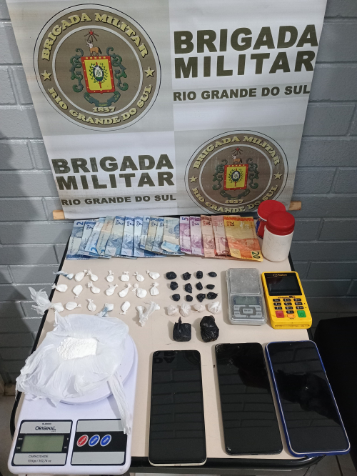 O indivÃduo e o material apreendido foram encaminhados para a Delegacia de PolÃcia