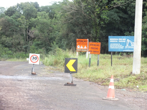 Base de pedra brita tem sido esparramada nas proximidades da cidade de Crissiumal