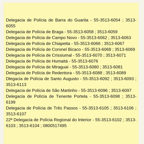 DP de Crissiumal atende nos fones 55 3513-6070 e 3513-6071