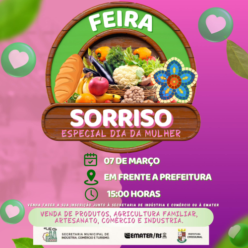 Feira terá inÃcio à s 15hs em frente a Prefeitura