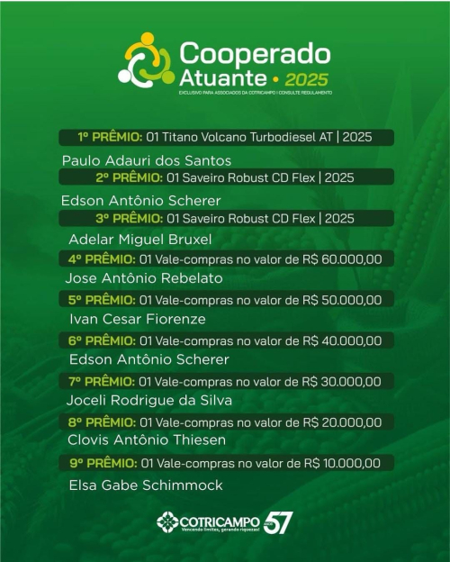 Sorteio aconteceu neste sábado. Veja a informação completa no link