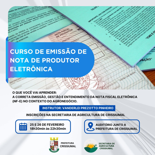 Inscrições estão abertas na Secretaria de Agricultura
