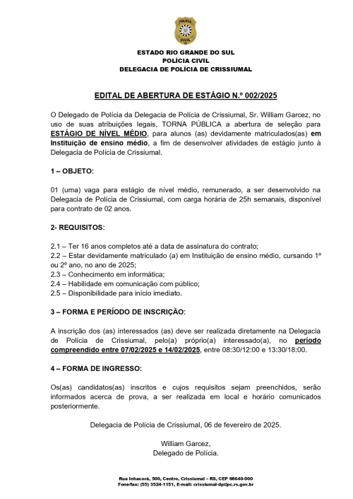 Inscrições devem ser feitas nos dias 13 e 14 de fevereiro