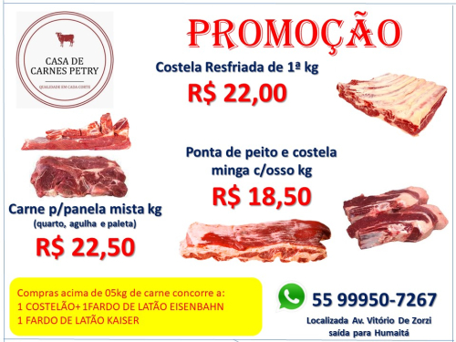 Comprando acima de 05kg de carne concorre a 1 costelão e fardos de cervejas