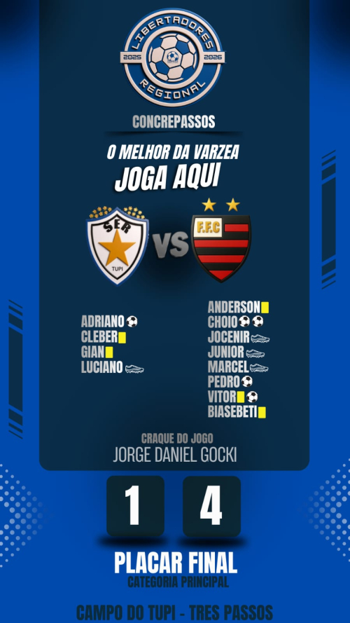 O sábado (07) foi de encerramento da 1ª fase da Libertadores Regional para o representante de Crissiumal, o Flamengo de Zona Grun, que atuou em Erval Novo, Três Passos, diante do Tupi.