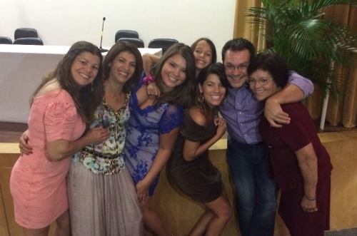 Deonilda com os filhos Rafael, Carolina, Patrícia, Sandra, Jane e a neta Laura.