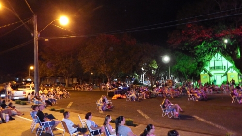 No início da noite cerca de 200 crissiumalenses acompanharam o Entrevero Cultural, que foi realizado na rua em frente a Praça 25 de Julho, tendo espetáculos de música e dança.