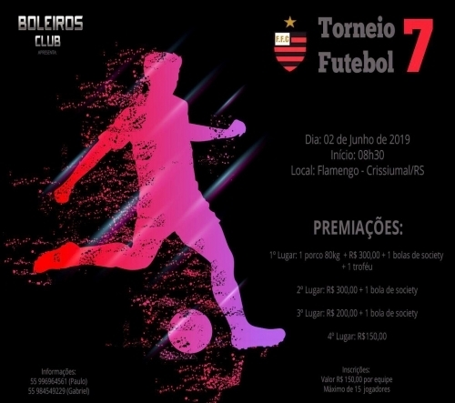 Torneio de futebol 7 do Boleiros Club. Grande premiação, árbitros contratados, segurança, e iluminação no campo para os jogos finais. Será neste domingo, dia 02 de junho.