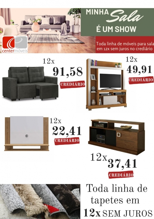 Toda linha de móveis para sala em 12x sem juros no crediário