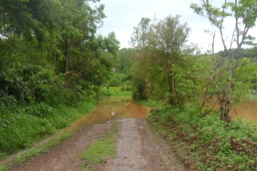 Estrada afetada pela água.