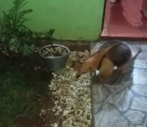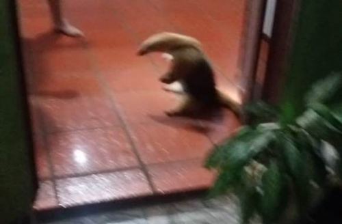 A família do agricultor Edson Steffler, na localidade de Linha Cotricampo, no interior de Crissiumal, recebeu em sua propriedade a visita de um tamanduá mirim.